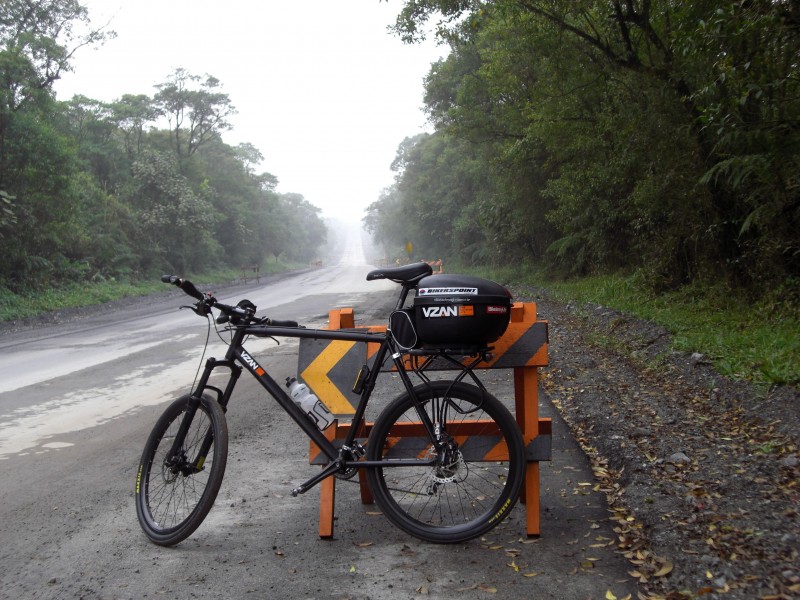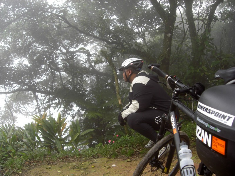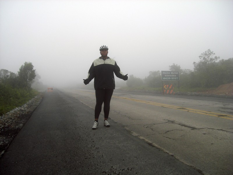 Bom, não saí muito cedo, por causa do frio, mas não sabia o que ia enfrentar. Sabia que a região é de serra, mas não imaginava tanto frio e neblina. Pedalei o tempo todo com o farol e a lanterna ligados, mesmo na Anchieta, tamanha era a neblina. Graças aos céus que eu resolví ir de calça, pois se tivesse de bermuda teria sérios problemas.