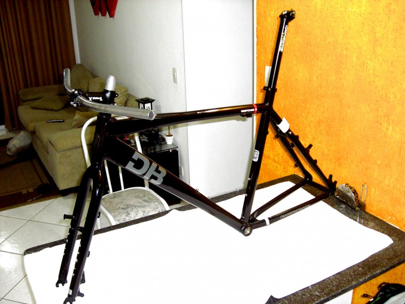 Como alguem disse por aí, "bike é quadro, o resto é componente..." Chegou o DB Response, garfo rígido cromo Surly e Guidão de Cromo Surly 1x1 + Canote Dabomb Dalux.... A mesa é só para dar uma idéia...